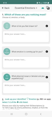 The Essential Emotions+ app lets you look up specific oils, emotions, or body concerns, then helps you get to the root of your concern. Identify the negative emotion you are currently feeling or choose a positive one you want to feel from 500+ emotions, 100+ essential oils or 250+ body parts and systems. Then apply the recommended essential oil.