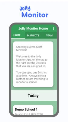 The Jolly Monitor app is used by officials when they visit a school. The app guides them through the visit, asking them questions on the teacher, and during a lesson observation. After completing the questions the monitor is provided with a mentoring feedback report to give to the teacher, so they can improve their teaching.