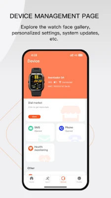 syncs your health and sports data, personalizes your smartwatch via custom settings, and features multiple watch faces available for download.