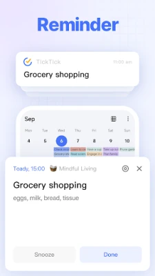 Delegate your memory to TickTick. It records all your tasks, providing immediate to-do list reminders to help you get things done. With multiple alerts for vital tasks and notes, you'll never overlook a deadline again