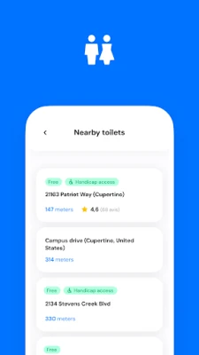 An application as practical and simple as saying ""hello!"" to find a toilet nearby. Toilet Finder can help you in every situation, in any country in the world! Find toilets that are specifically free to use, those accessible to handicapped persons, and even those given 5 STARS by our users.
